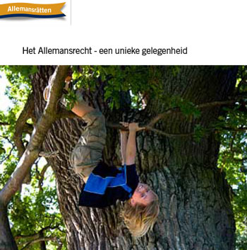 En folder som berättar om huvudregeln i allemansrätten: Inte störa – inte förstöra. Nederländsk text.