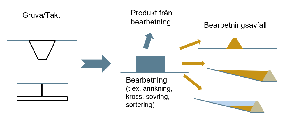 Det avfall som uppkommer som en direkt följd av utvinningsindustrins verksamhet kallas utvinningsavfall. Det kan komma från prospektering, utvinning eller bearbetning, eller som en direkt följd av lagring av utvunnet material innan bearbetningen av materialet har avslutats. Utvinningsavfallsförordningen ska tillämpas på hanteringen av utvinningsavfall oavsett om det kommer från täkt- eller gruvverksamhet eller från prospekteringen.